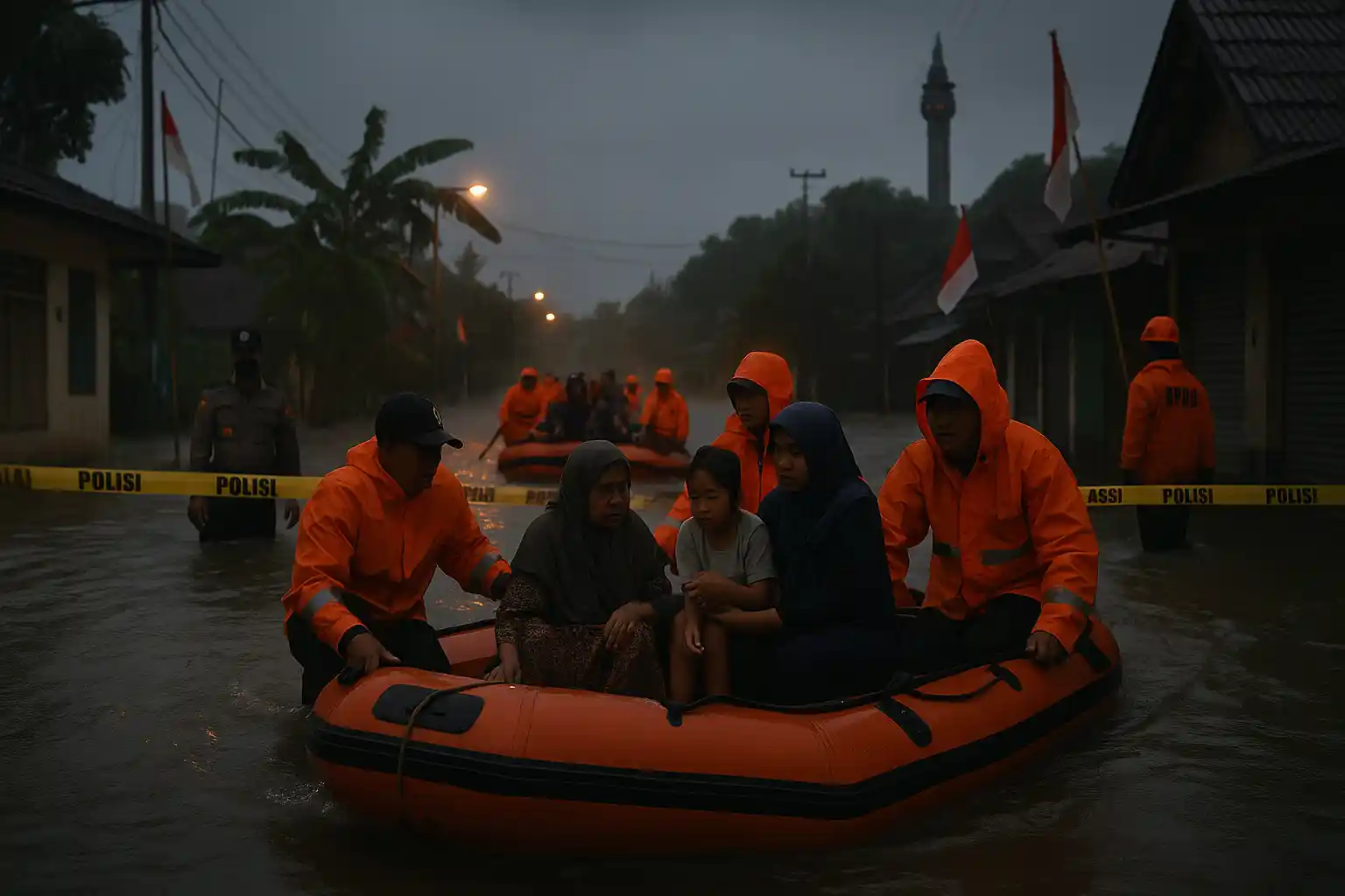 Evakuasi Banjir Lumajang berlangsung saat hujan intens memicu luapan di wilayah Sukodono dan sekitarnya. Petugas gabungan mengutamakan warga rentan, mengevakuasi balita, lansia, serta penyandang disabilitas ke titik aman yang telah disiapkan. Perahu karet dikerahkan menyusuri gang sempit, sementara radio komunikasi memetakan permintaan bantuan agar distribusi logistik, obat, dan selimut tepat sasaran.